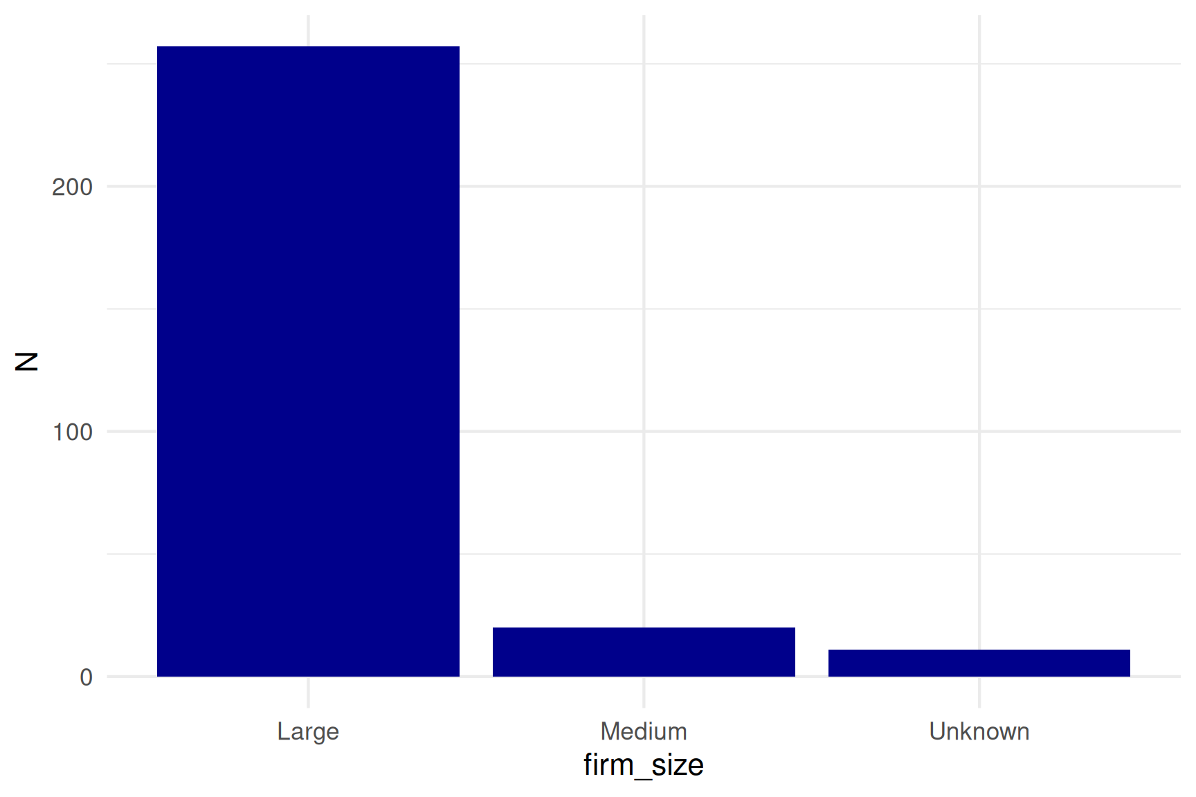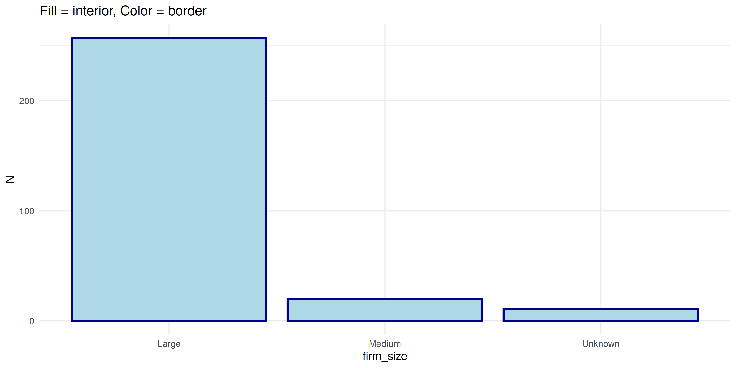 theme_minimal()Each bar shows total, colors show contribution from each firm size